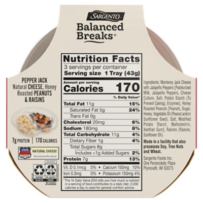 Sargento Balanced Breaks Pepper Jack Natural Cheese Peanuts Raisins